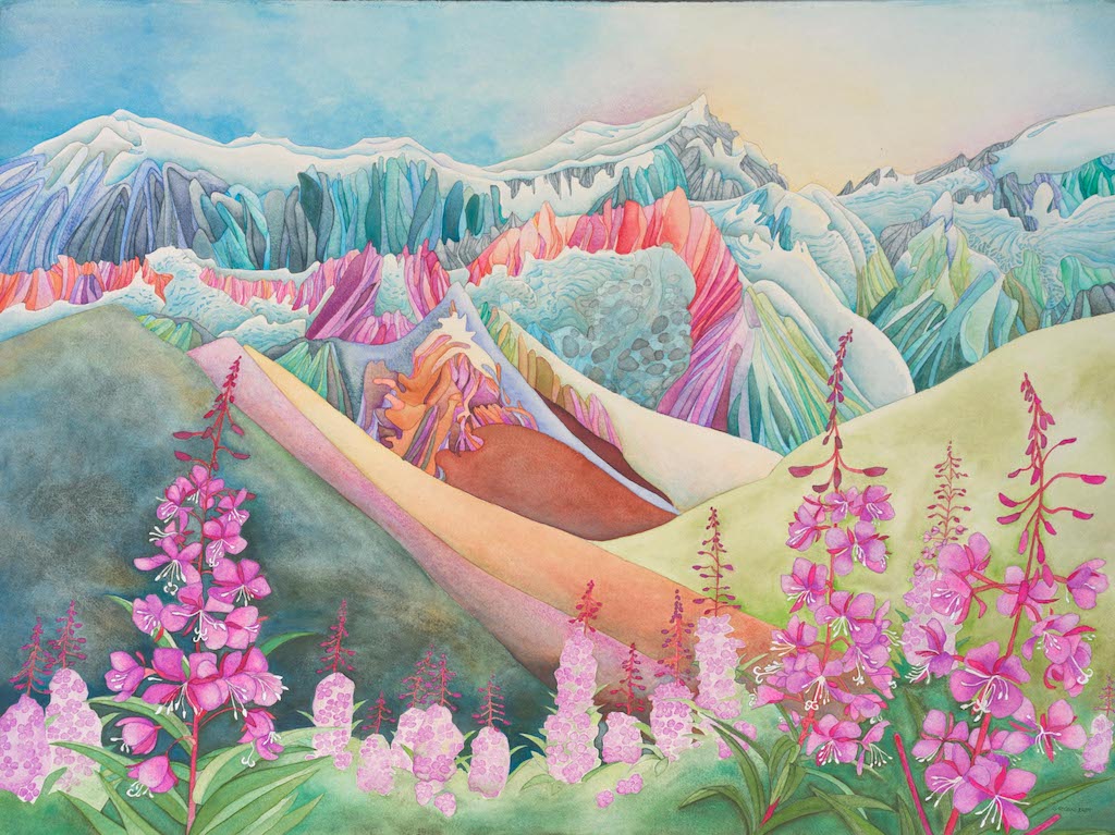 Stephanie Ryan is a watercolour artist living in Whitehorse, Yukon and Skagway, Alaska. Her paintings each feature a bit of the sense of awe she feels when she is in the mountains, on some great river, or in a beautiful backyard garden.