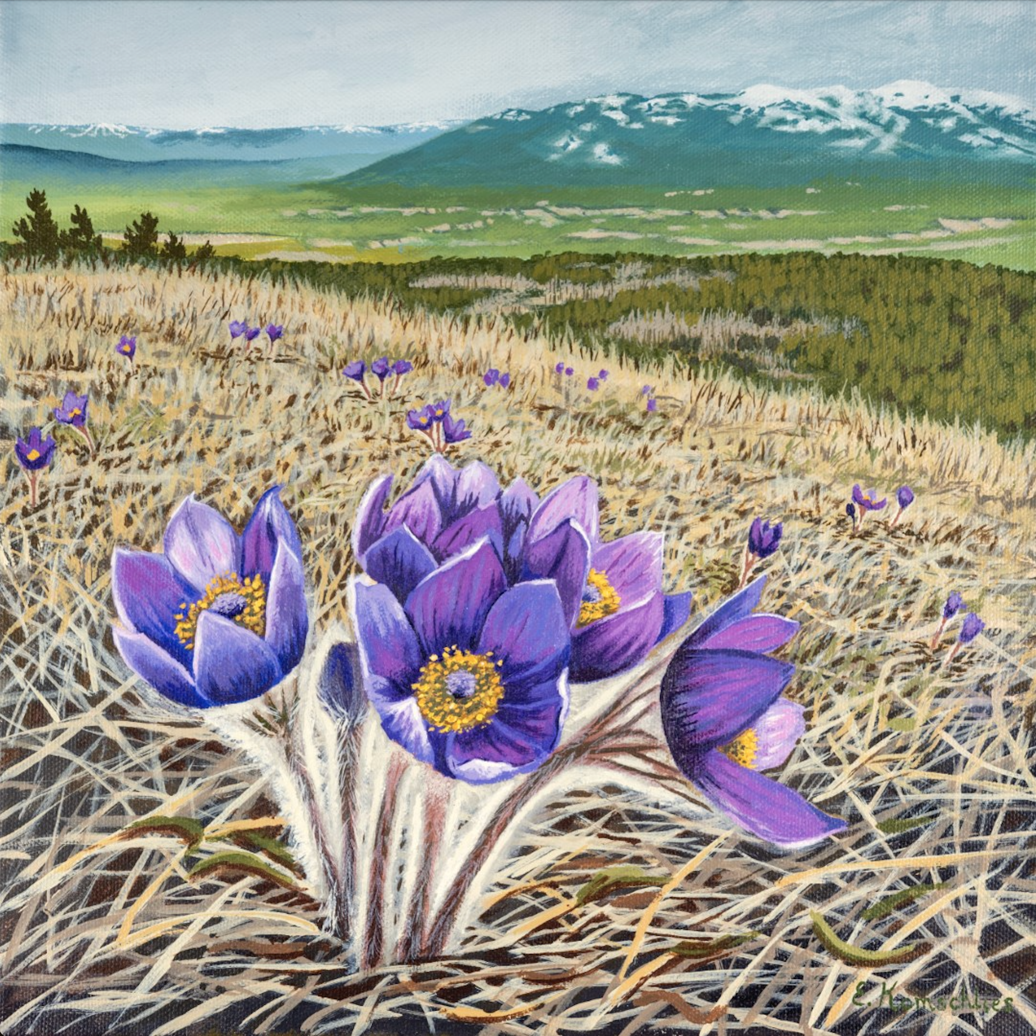 Erinn Komschlies is a landscape artist living in Whitehorse. In all of her work, she aims to capture the personal memories and emotions tied to a particular place and to share the glory of the north with the world.