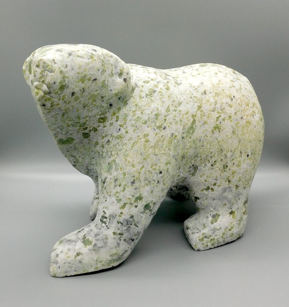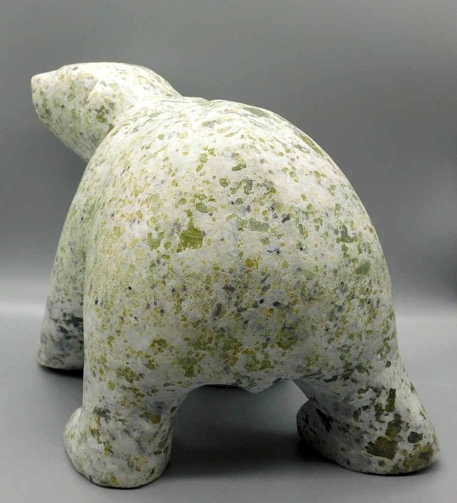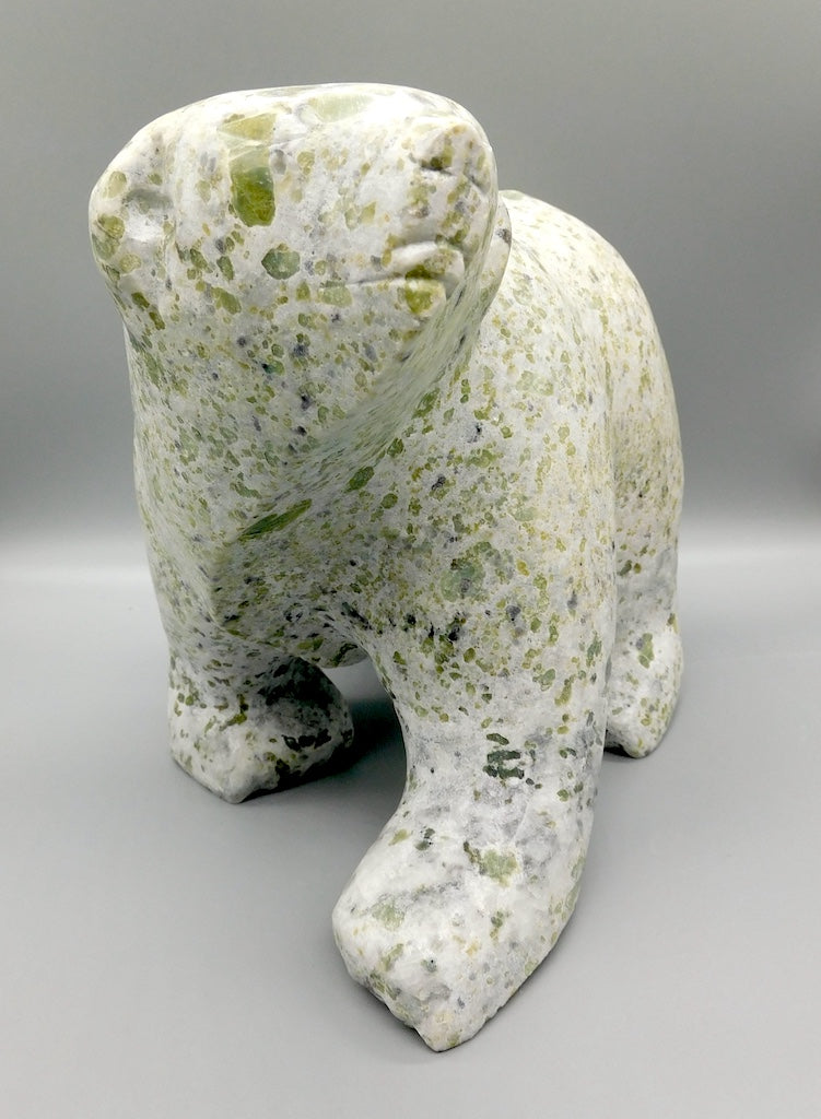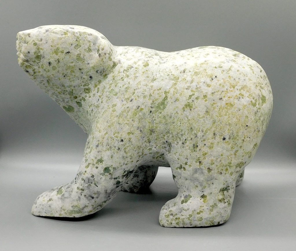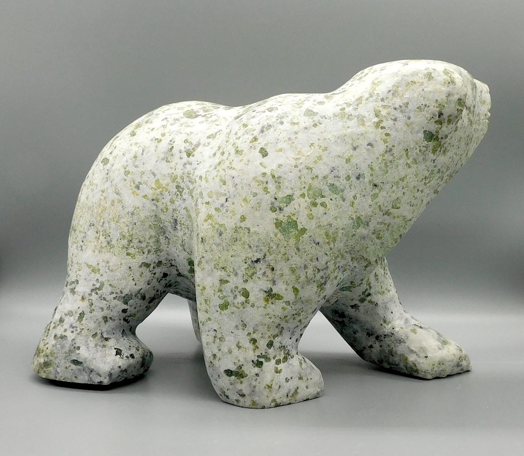 All our Inuit sculptures are carved from a single piece of stone, locally sourced from the carvers community, most commonly Serpentine or Argillite. These stones are carvable but are significantly harder than soapstone.
