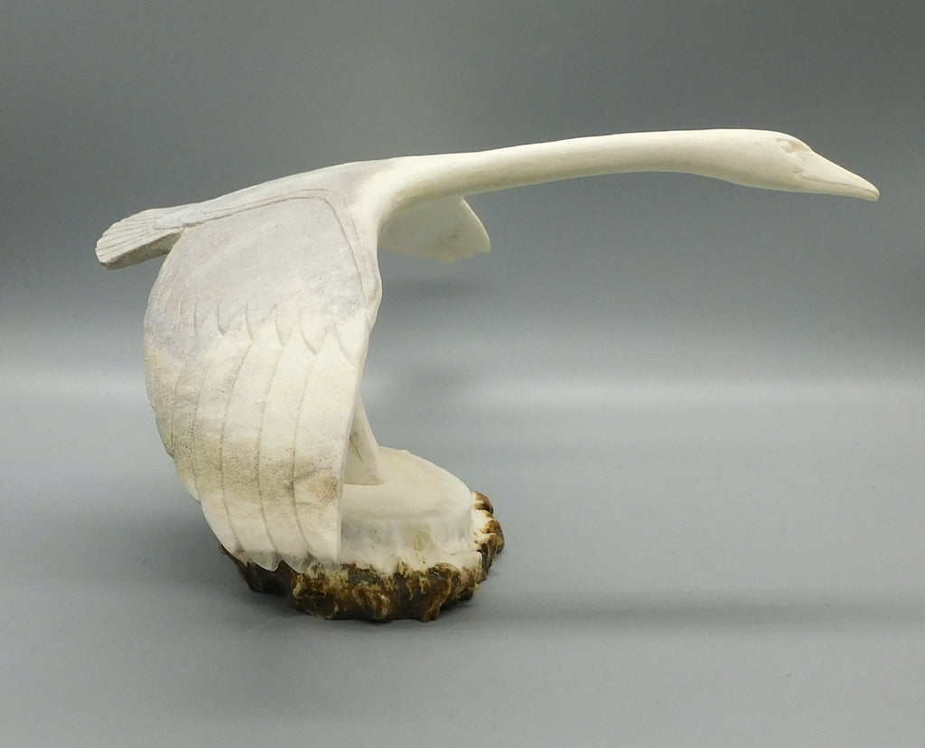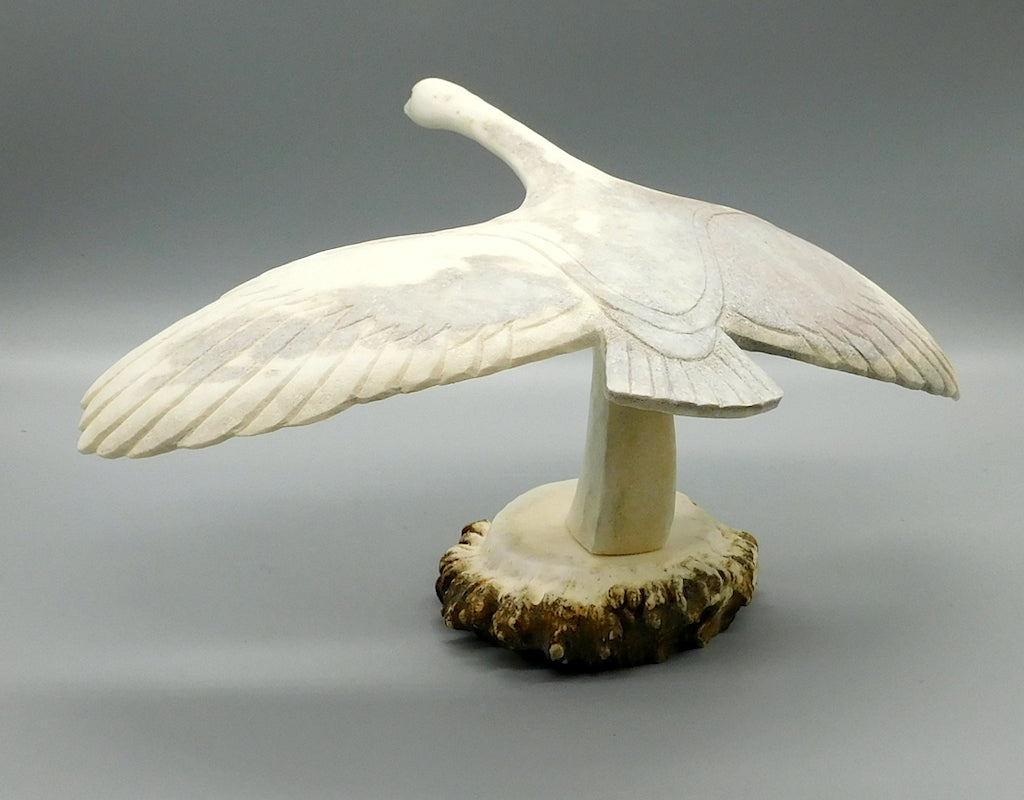 Swan in Flight-Caribou Antler on Moose Antler Base
