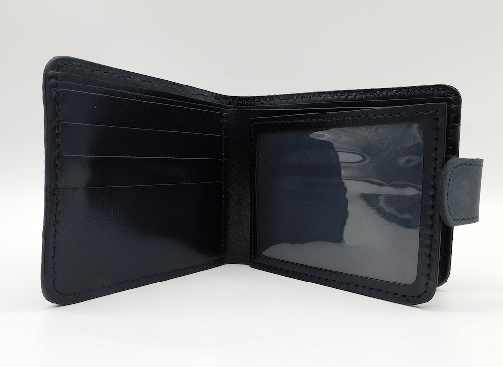 Interior: 2 bill compartments, 1 transparent window ID slot, 4 cardholder spaces and 1 snap closure coin compartment