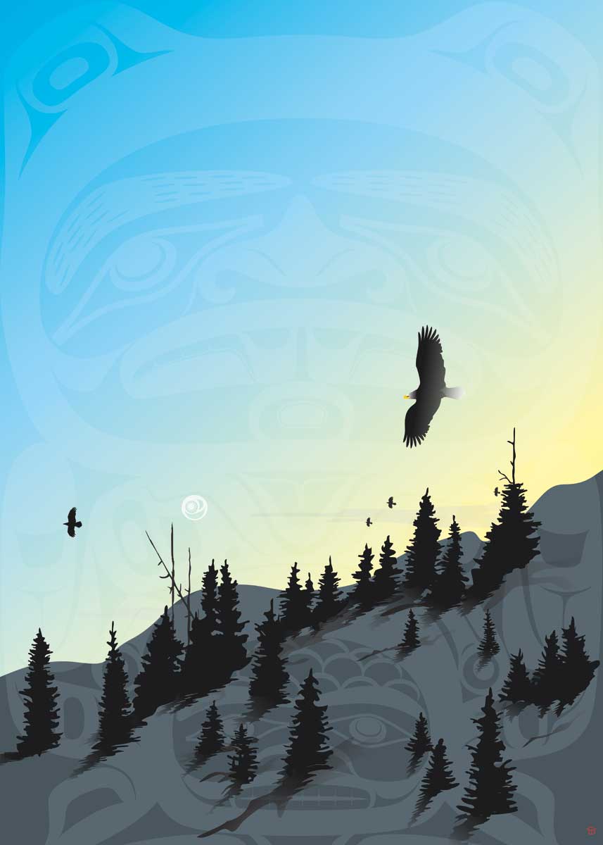 Tlingit artist Mark Preston, worked in a variety of media. Known for minimalist motifs that symbolize clarity, peacefulness, and open-mindedness. His Tlingit name was Tenna-Tsa-Teh.