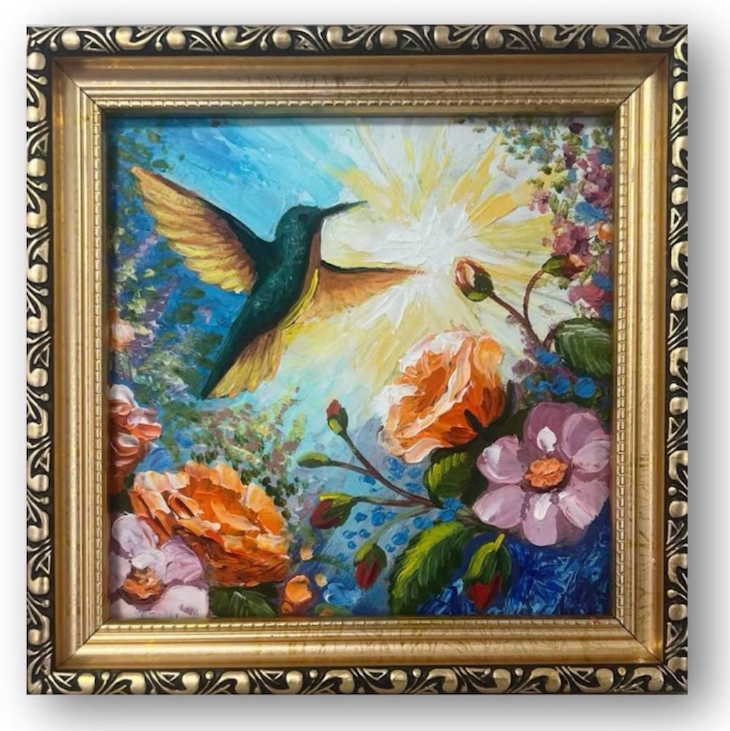Hummingbird - Framed Original Painting - Olya - 6x6