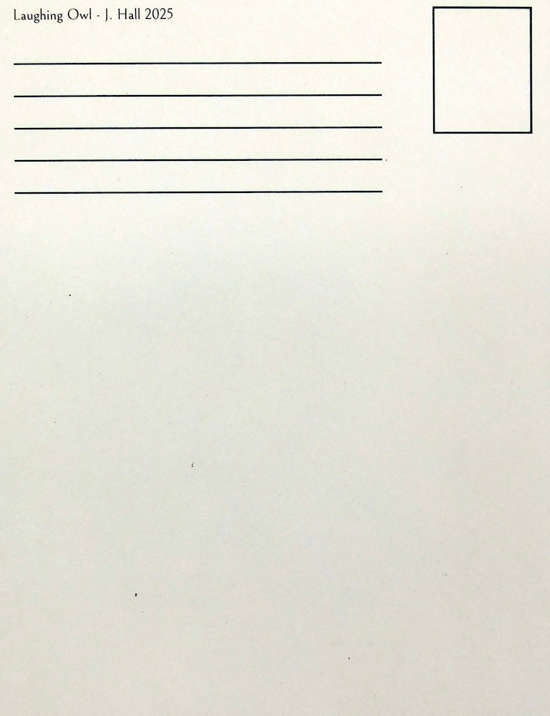 3 Postcard Designs Available: Laughing Owl, Marsh Moose, Winter Walk in Whitehorse