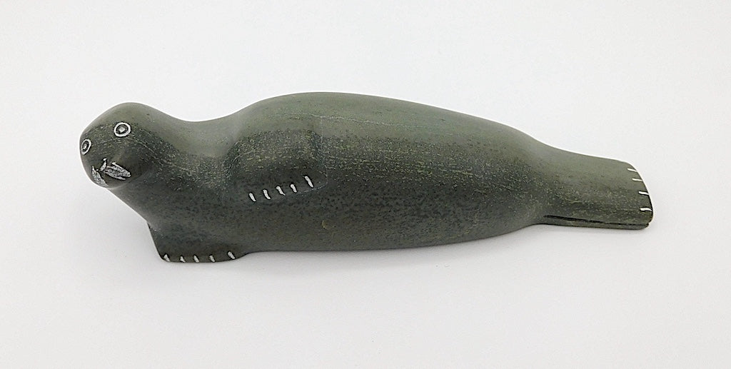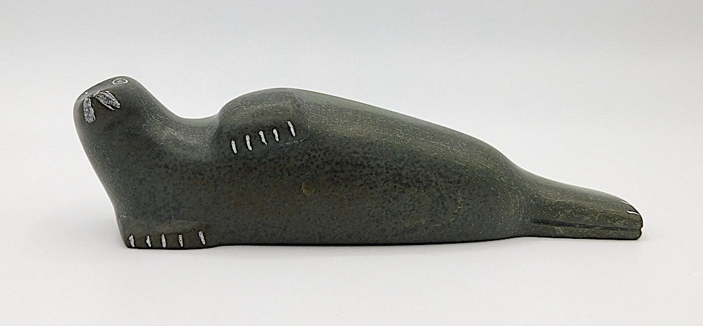 All our Inuit sculptures are carved from a single piece of stone, locally sourced from the carvers community, most commonly Serpentine or Argillite. These stones are carvable but are significantly harder than soapstone.