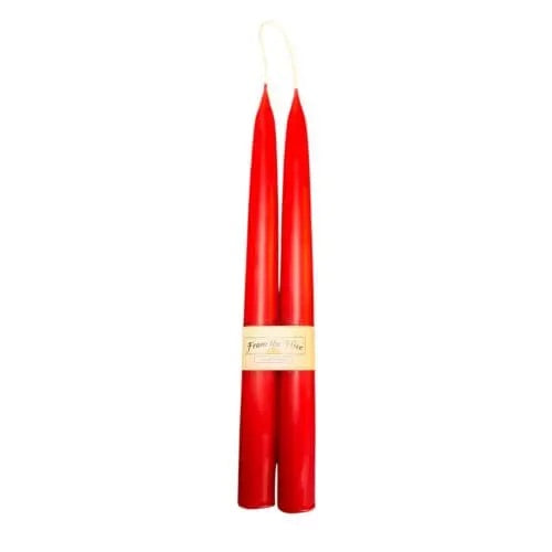 Our elegant red hand dipped PEI Beeswax tapers will always create a warm atmosphere.   We use the highest quality beeswax cappings which is the cleanest wax that the honey bees uses to seal the cells of the honey. We only use chemical free and eco-friendly dye which also gives the tapers that beautiful rich color, as well as 100% cotton flat braided wicks with no additional material added. Beeswax is non-toxic, sustainably sourced and waste free.  Beeswax will emit “Negative Ions” that will purify the air by neutralizing pollutants, molds, and odours. Everyone benefits from burning pure beeswax, especially those who suffer from allergies and asthma.  They are safe to burn around pets and birds. Pure Beeswax candles will emit a light very similar to sunlight.  They are very pleasing to the eye and can be a wonderful candle to burn during the winter months as there is less sunlight.