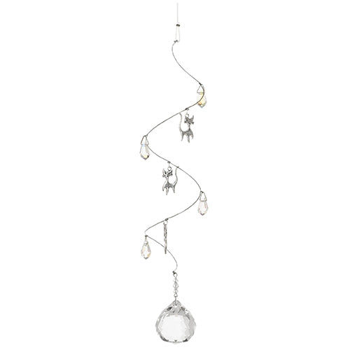 Spiral Mobile - Crystals - Pewter Charm Cat