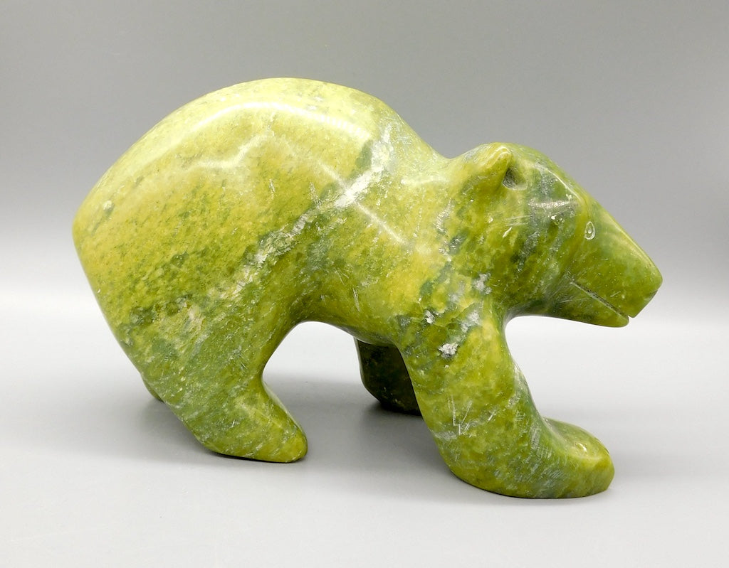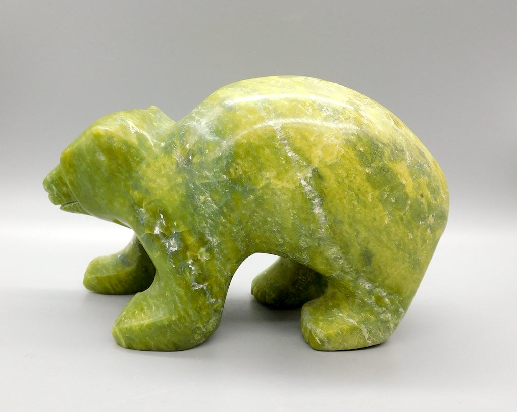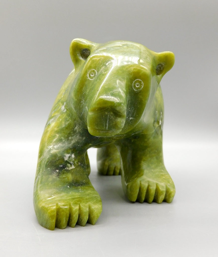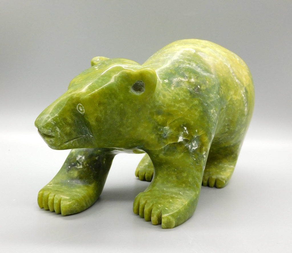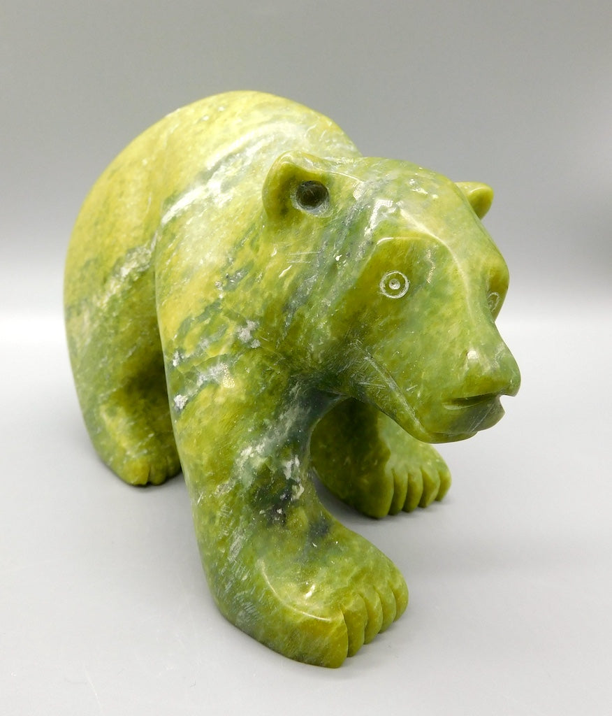 All our Inuit sculptures are carved from a single piece of stone, locally sourced from the carvers community, most commonly Serpentine or Argillite. These stones are carvable but are significantly harder than soapstone.