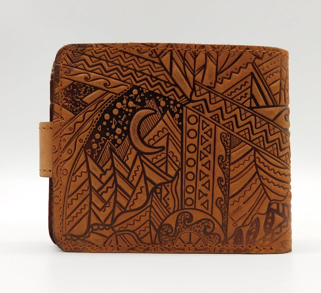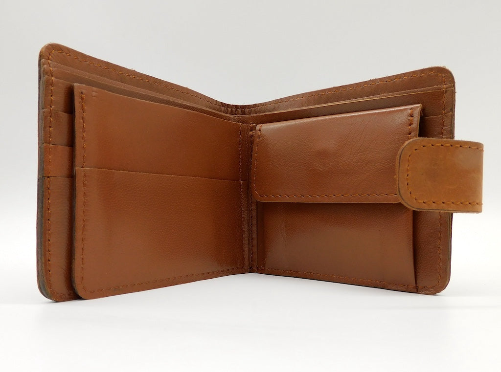 Interior: 2 bill compartments, 1 transparent window ID slot, 4 cardholder spaces and 1 snap closure coin compartment