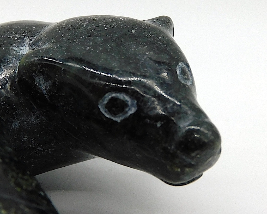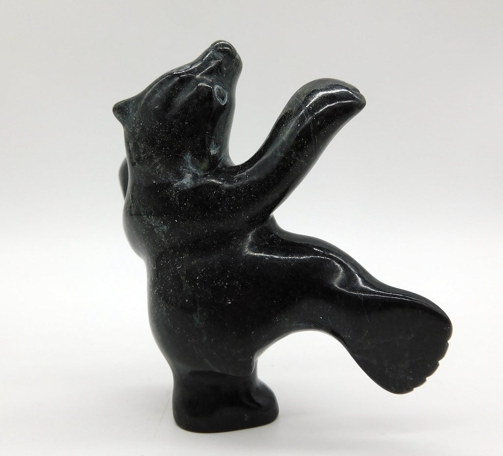 All our Inuit sculptures are carved from a single piece of stone, locally sourced from the carvers community, most commonly Serpentine or Argillite. These stones are carvable but are significantly harder than soapstone.