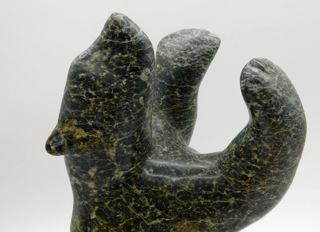 All our Inuit sculptures are carved from a single piece of stone, locally sourced from the carvers community, most commonly Serpentine or Argillite. These stones are carvable but are significantly harder than soapstone.