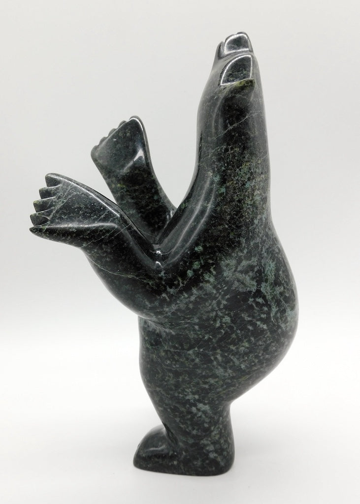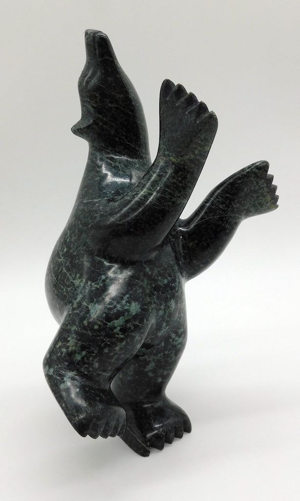 All our Inuit sculptures are carved from a single piece of stone, locally sourced from the carvers community, most commonly Serpentine or Argillite. These stones are carvable but are significantly harder than soapstone.