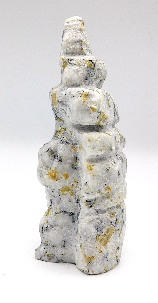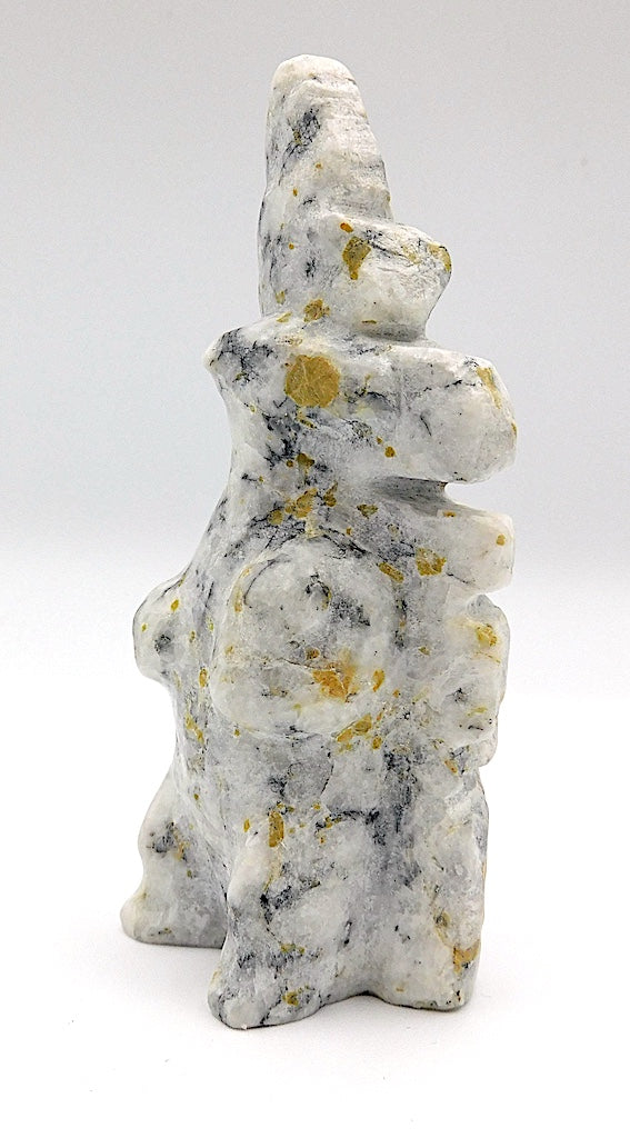 All our Inuit sculptures are carved from a single piece of stone, locally sourced from the carvers community, most commonly Serpentine or Argillite. These stones are carvable but are significantly harder than soapstone.