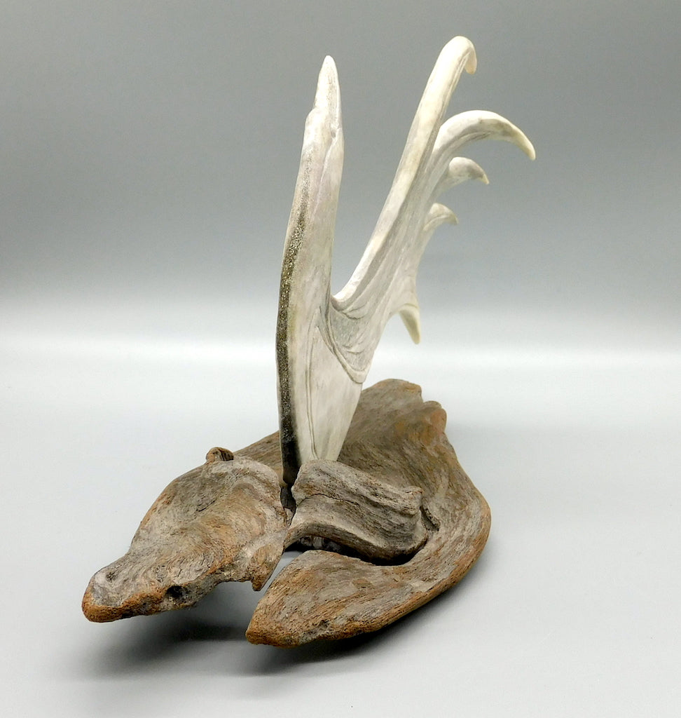 Seventeen Feathers-Caribou Antler on Iron Wood