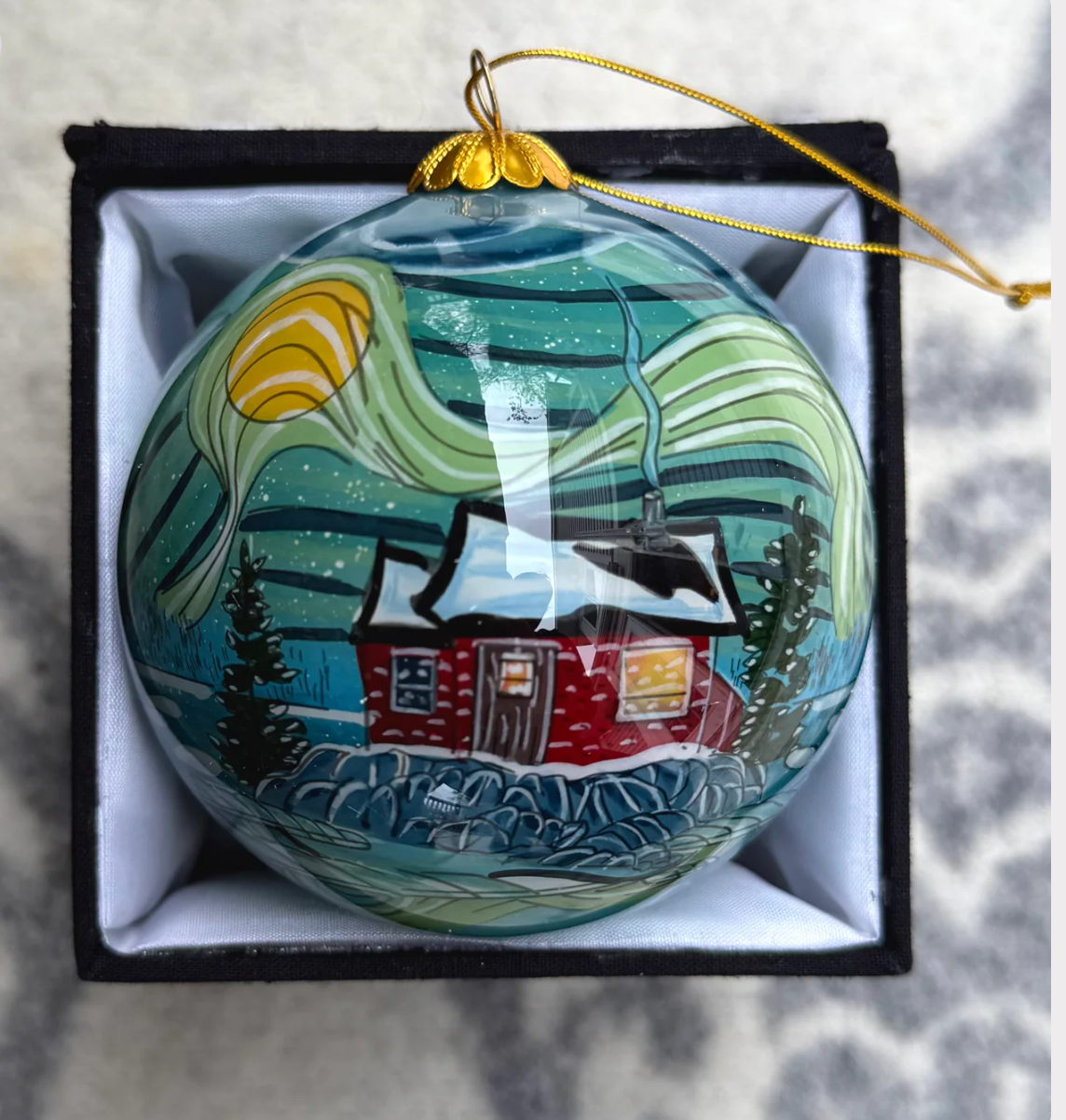 Decorate for the holidays with beautiful glass ornaments. Each is hand-painted and inspired by Robbie Craig's paintings.