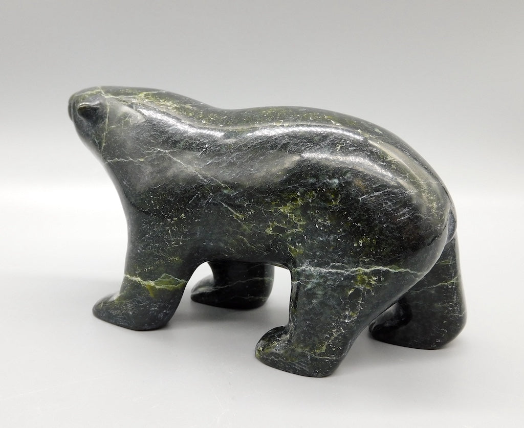 All our Inuit sculptures are carved from a single piece of stone, locally sourced from the carvers community, most commonly Serpentine or Argillite. These stones are carvable but are significantly harder than soapstone.