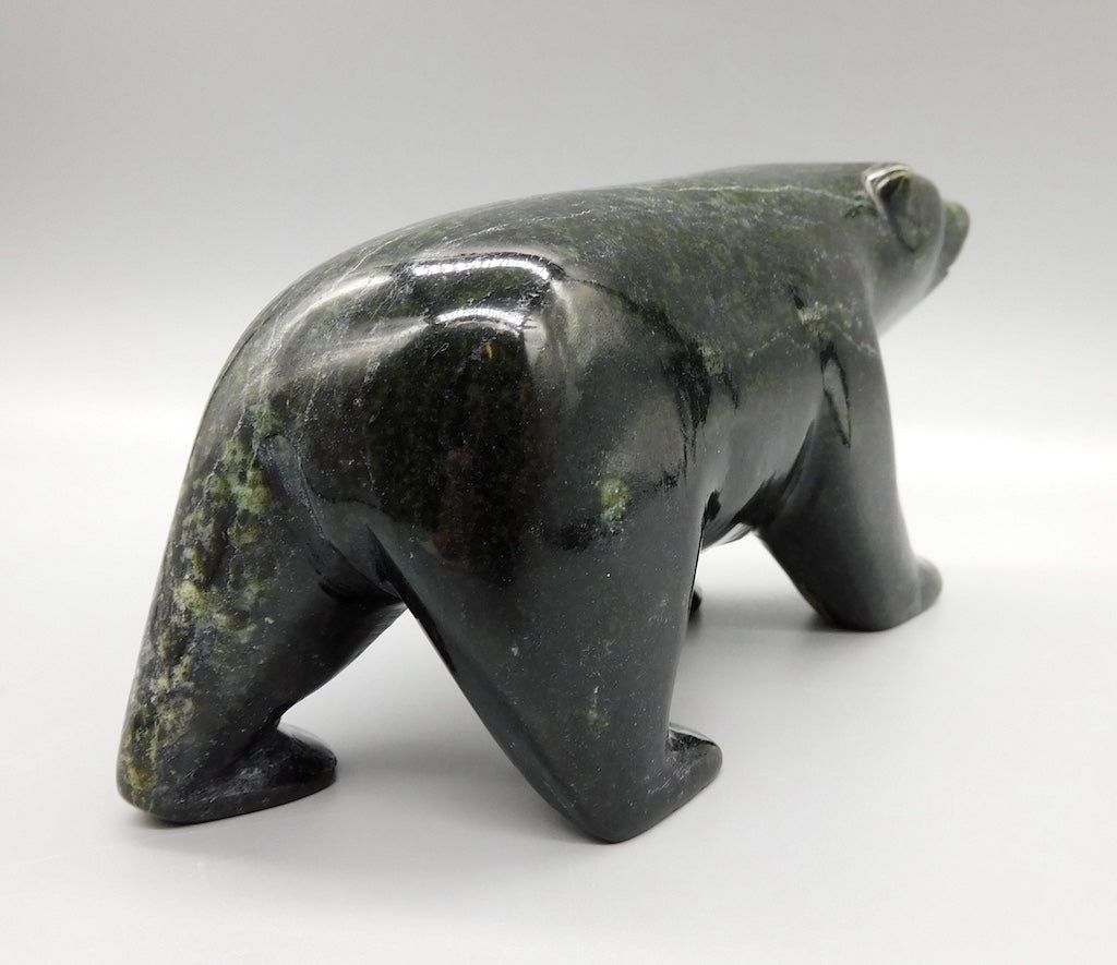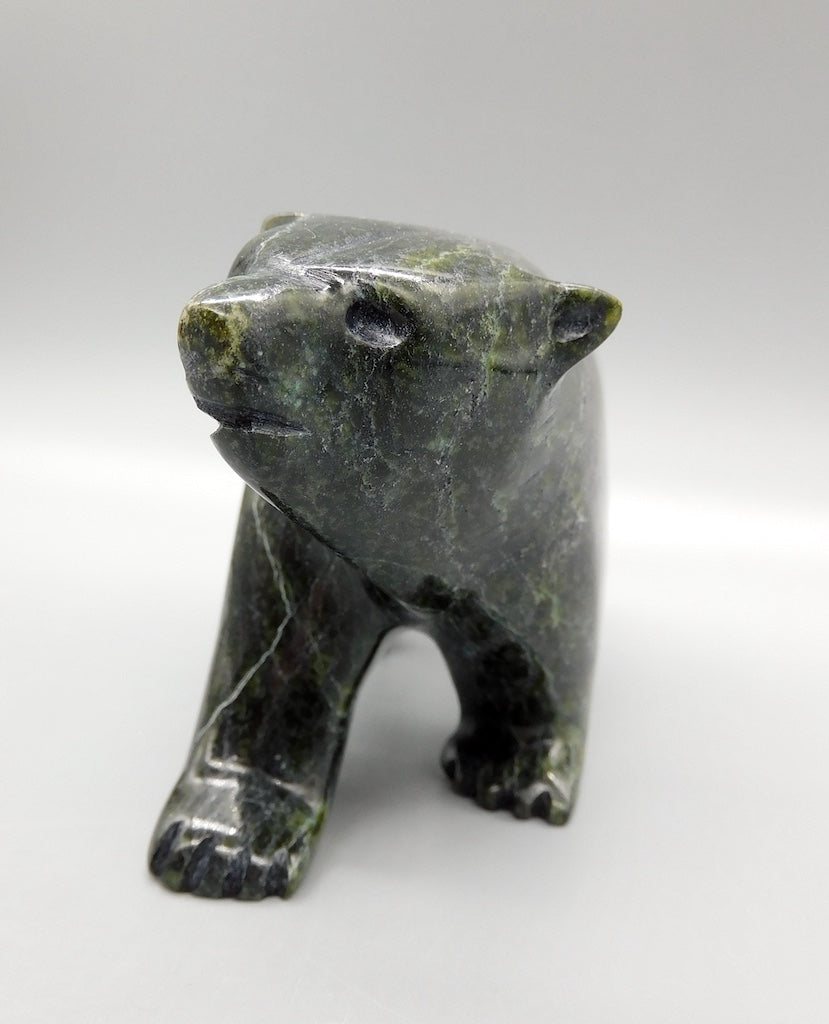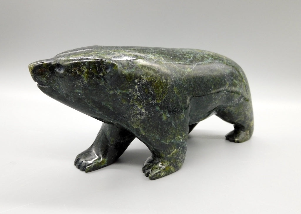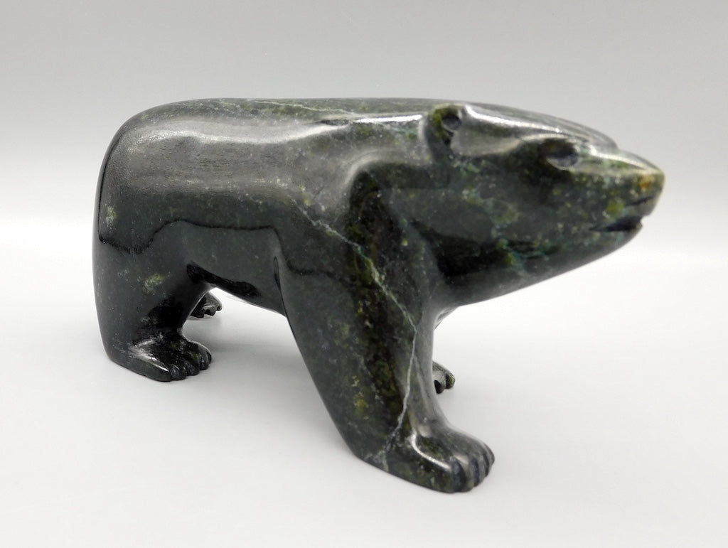 All our Inuit sculptures are carved from a single piece of stone, locally sourced from the carvers community, most commonly Serpentine or Argillite. These stones are carvable but are significantly harder than soapstone.