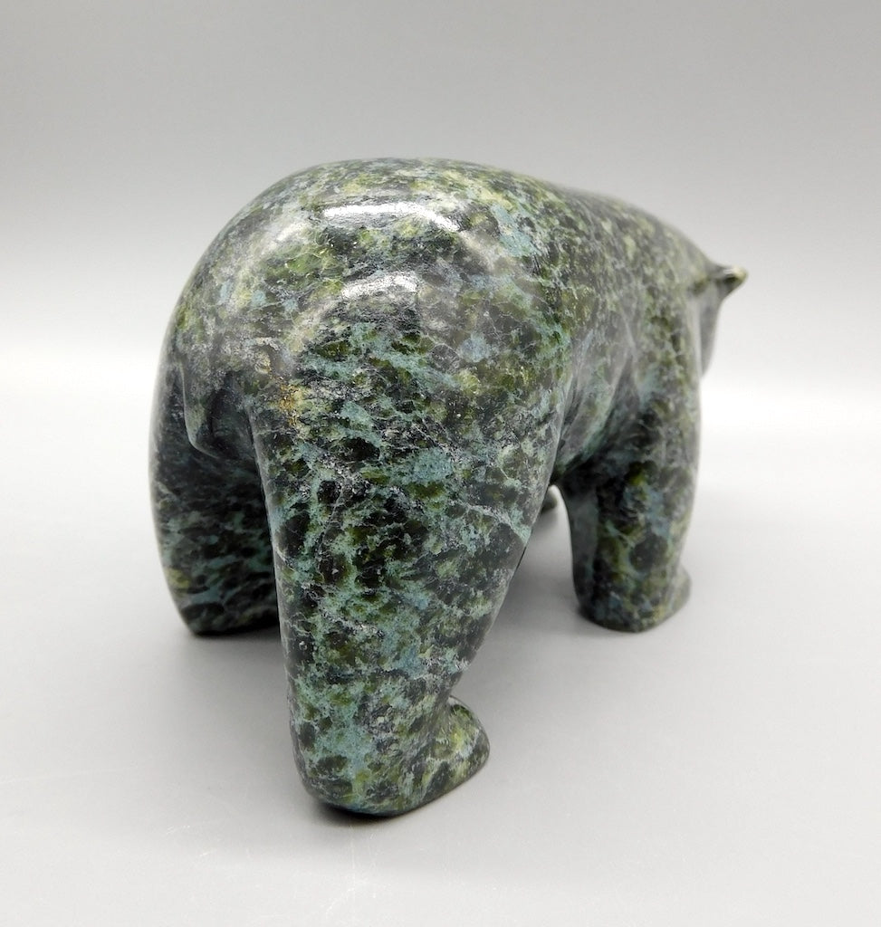 All our Inuit sculptures are carved from a single piece of stone, locally sourced from the carvers community, most commonly Serpentine or Argillite. These stones are carvable but are significantly harder than soapstone.