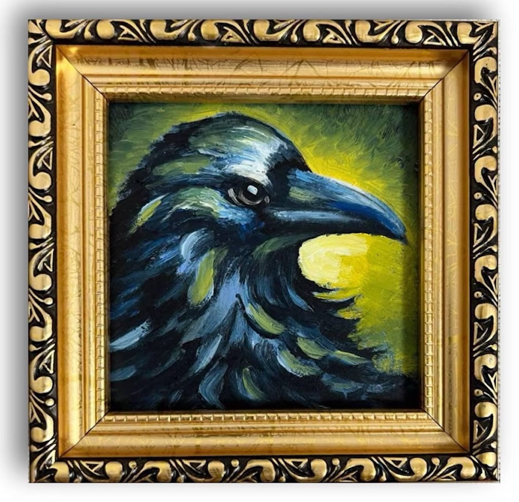 Crow- Framed Original Painting - Olya - 4x4