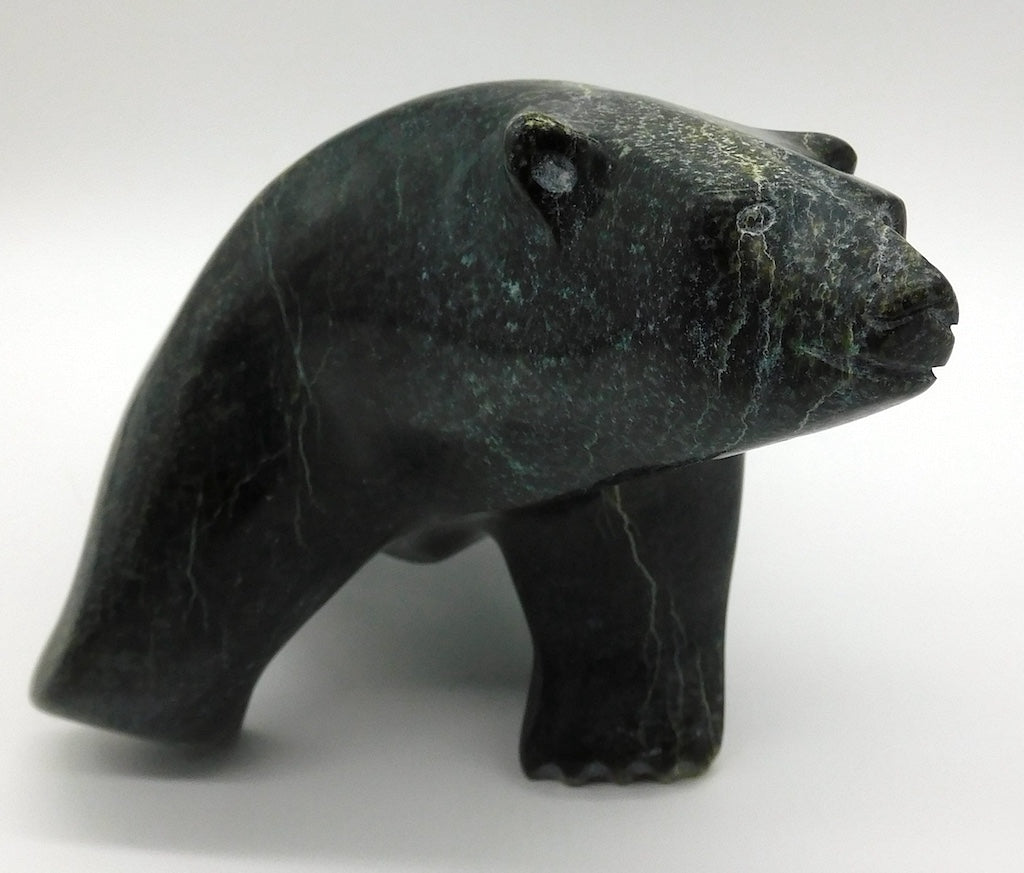 All our Inuit sculptures are carved from a single piece of stone, locally sourced from the carvers community, most commonly Serpentine or Argillite. These stones are carvable but are significantly harder than soapstone.