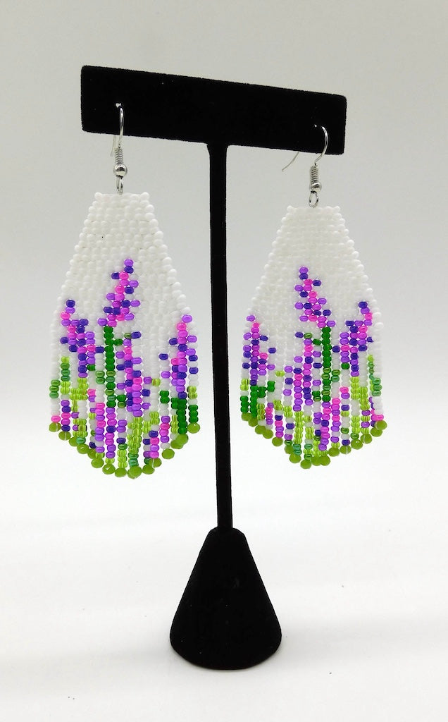 Design: white with purple/pink flowers