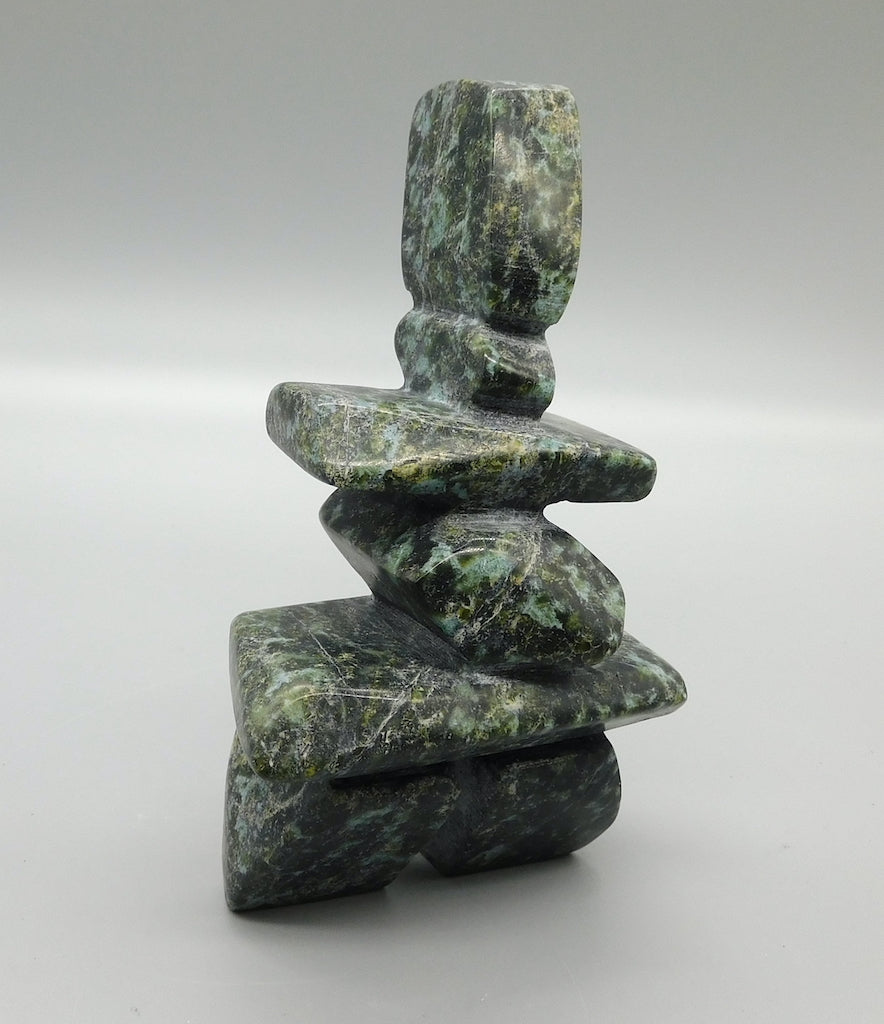 • All our Inuit sculptures are carved from a single piece of stone, locally sourced from the carvers community, most commonly Serpentine or Argillite. These stones are carvable but are significantly harder than soapstone.