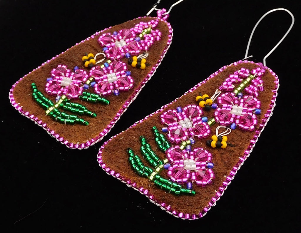 Long Moosehide/Beaded Earrings - SM