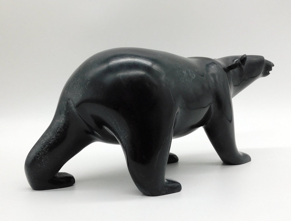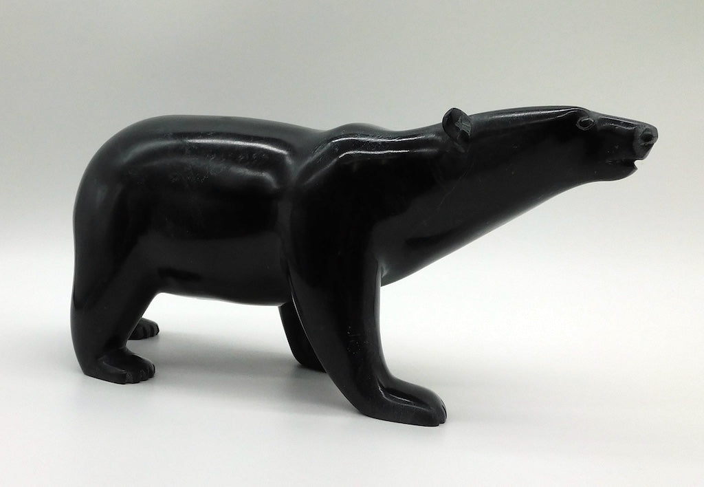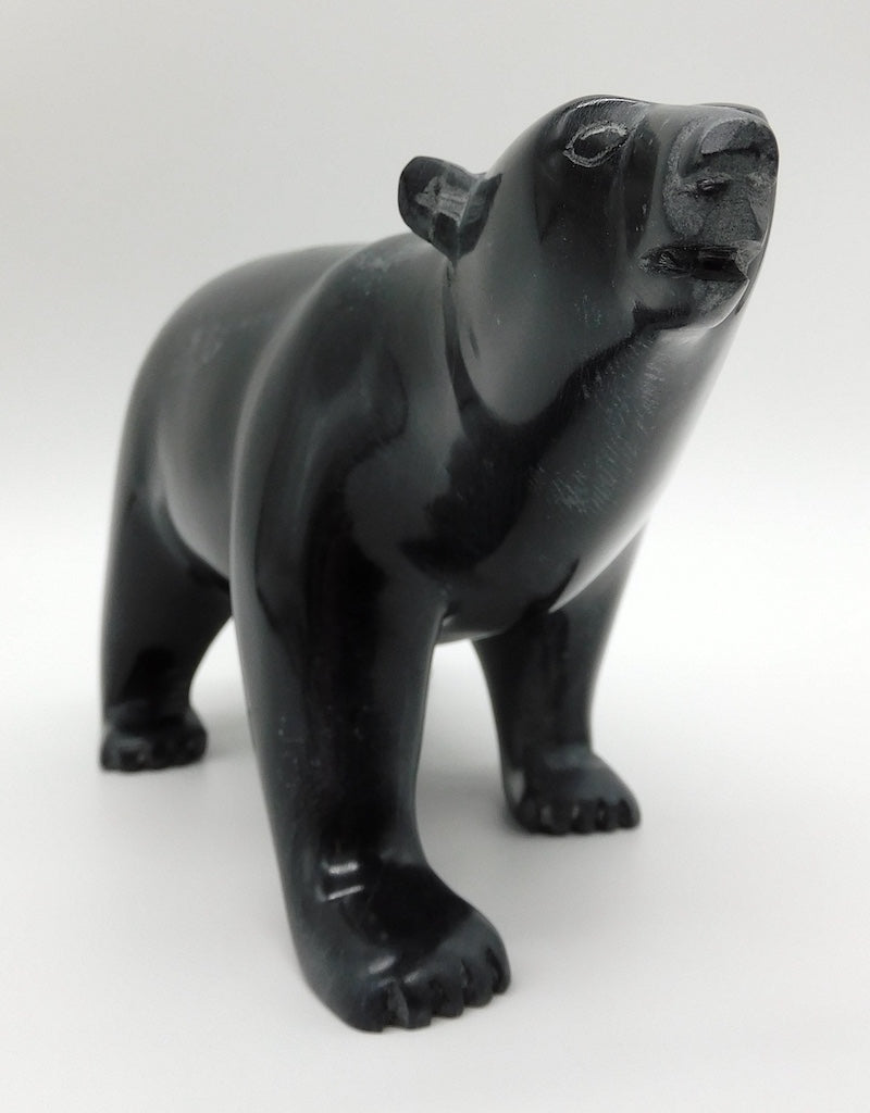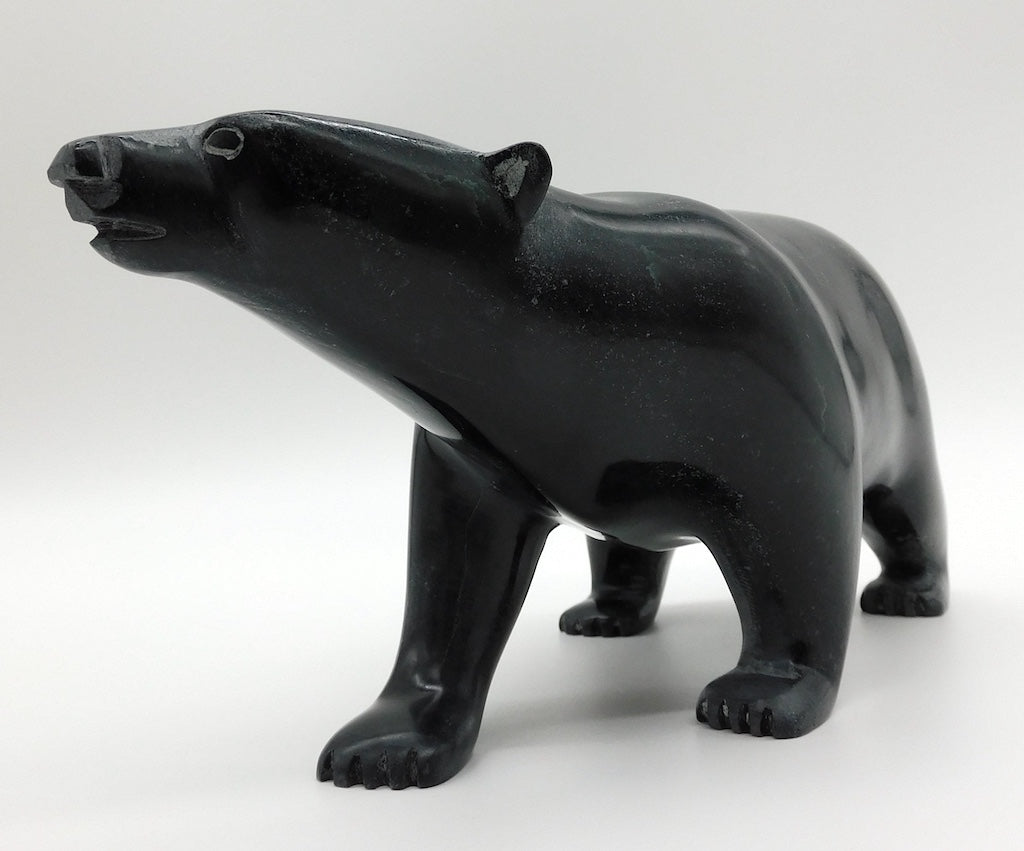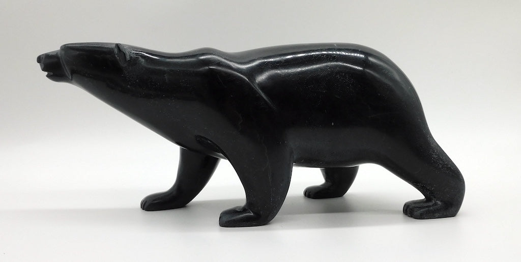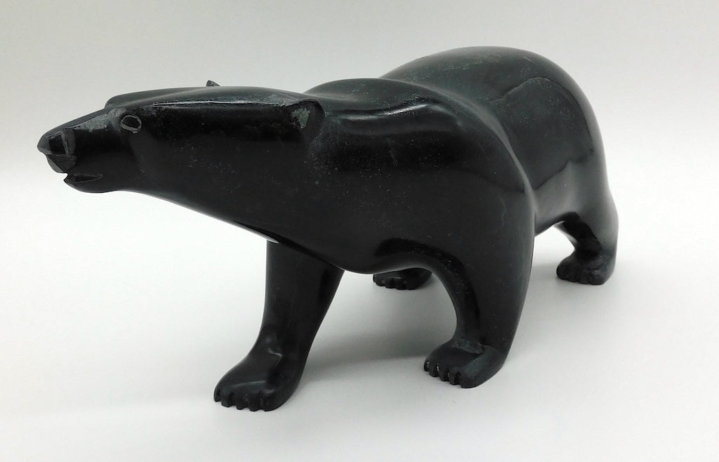 All our Inuit sculptures are carved from a single piece of stone, locally sourced from the carvers community, most commonly Serpentine or Argillite. These stones are carvable but are significantly harder than soapstone.
