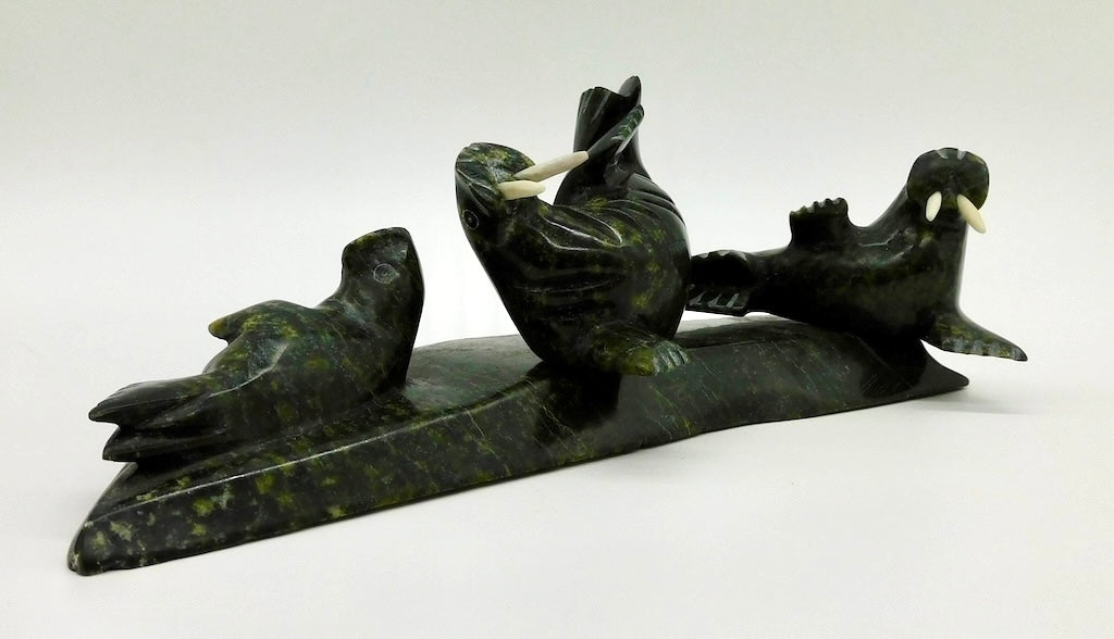 All our Inuit sculptures are carved from a single piece of stone, locally sourced from the carvers community, most commonly Serpentine or Argillite. These stones are carvable but are significantly harder than soapstone.